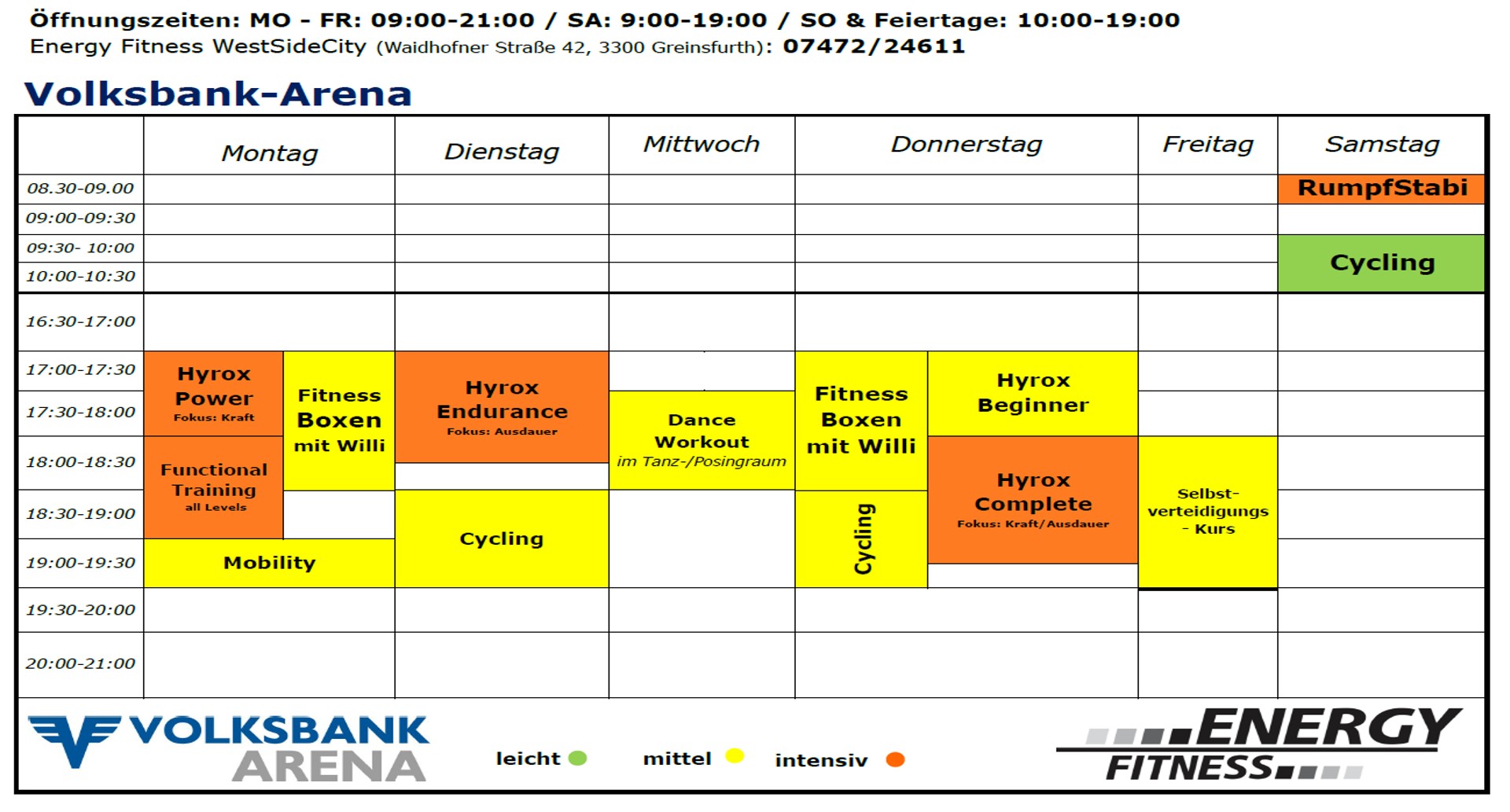 Training ist mit Zutrittsberechtigung von MO-SO auch außerhalb der Betreuungszeiten möglich.